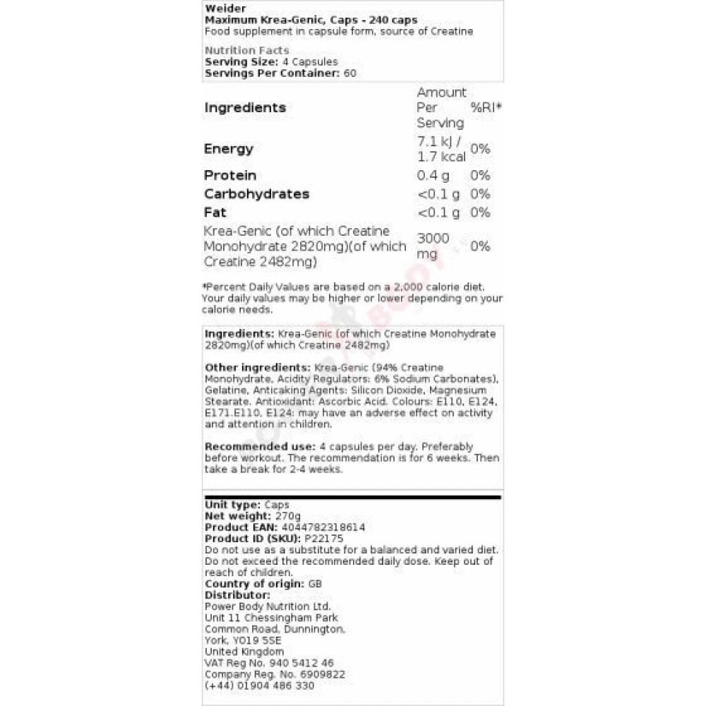 • Maximum Krea-Genic Weider Weider